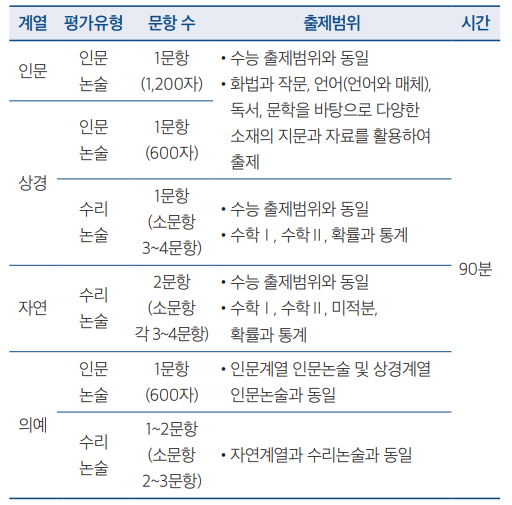 - 인문 논술 및 수리 논술 출제 경향 및 평가의도와 동일
