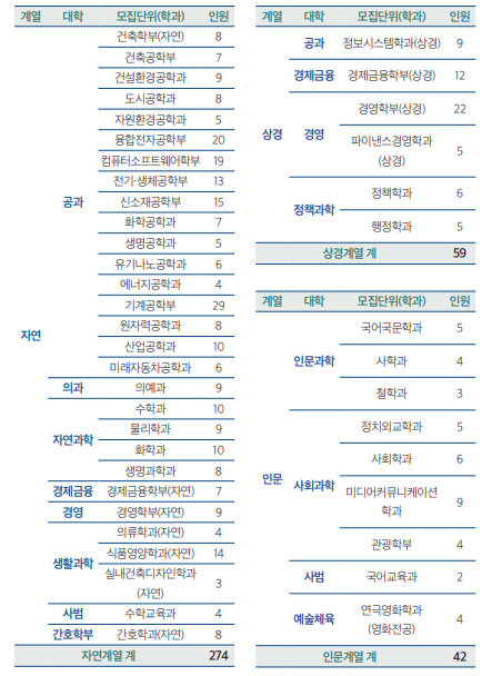 - 신규 모집단위 추가 : 정책학과 6명, 행정학과 5명