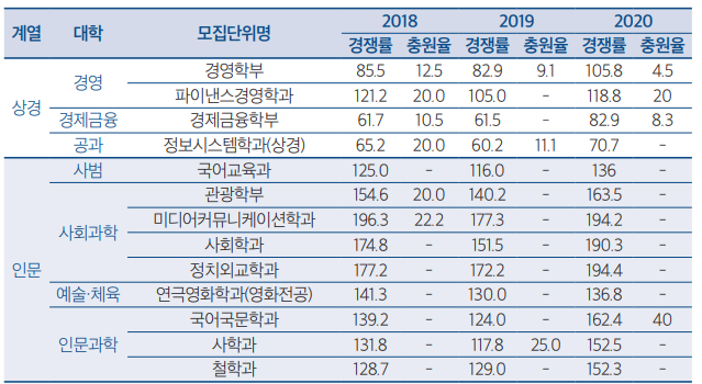 참고 한양대 논술전형 입학생 논술전형 경쟁률 및 충원율(2018~2020학년도)