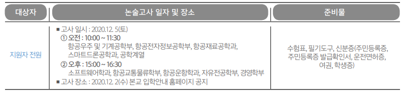 (3) 한국항공대학교 2021학년도 논술고사 일자 및 장소
