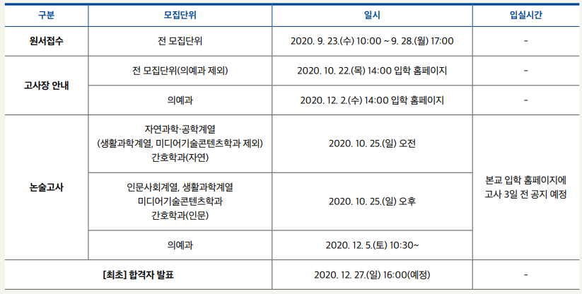 가톨릭대학교 2021학년도 논술전형안내 및 논술일정