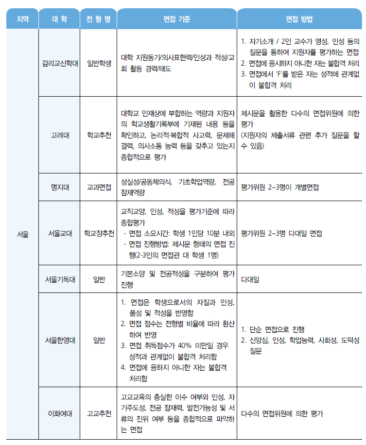 ∙ 학생부교과 전형에서 시행하는 면접의 유형은 다음과 같다.